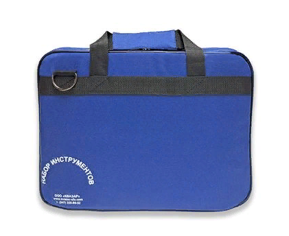 Комплект инструментов комплектуется в удобную инструментальную сумку с ручками и плечевым ремнем.